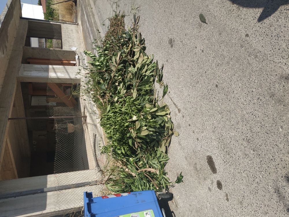 | Περιγραφή | Στην οδό Σάμου πλησίον Ακτινολογικού Ηλιοδρομίτη υπάρχουν τα εικονιζόμενα κλαδιά. Επίσης επειδή η συνοικία είναι αρκετά πυκνοκατοικημένη θα ήταν χρήσιμο ο ένας τουλάχιστον από τους κάδους να ήταν με ποδομοχλό γιατί υπάρχουν πολλοί ηλικιωμένοι που δυσκολεύονται να ανοίξουν τα καπάκι του κάδου |