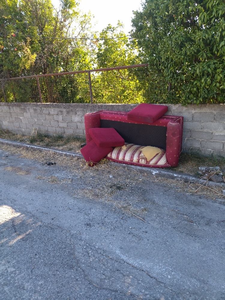 | Περιγραφή | Πεταμένος καναπές για μάζεμα |