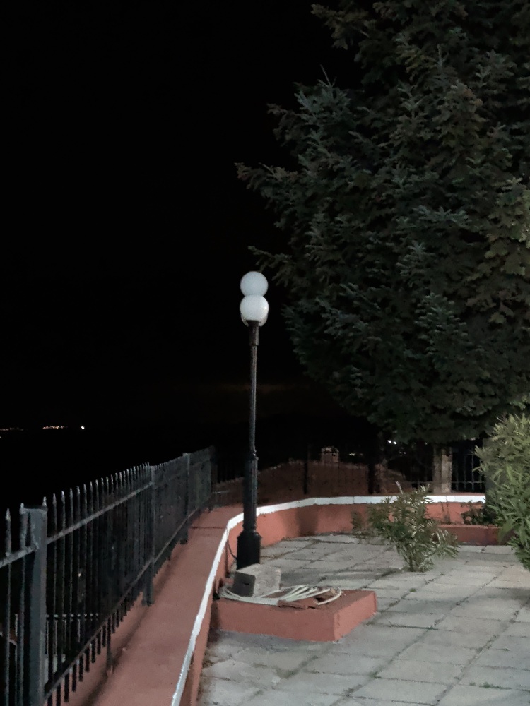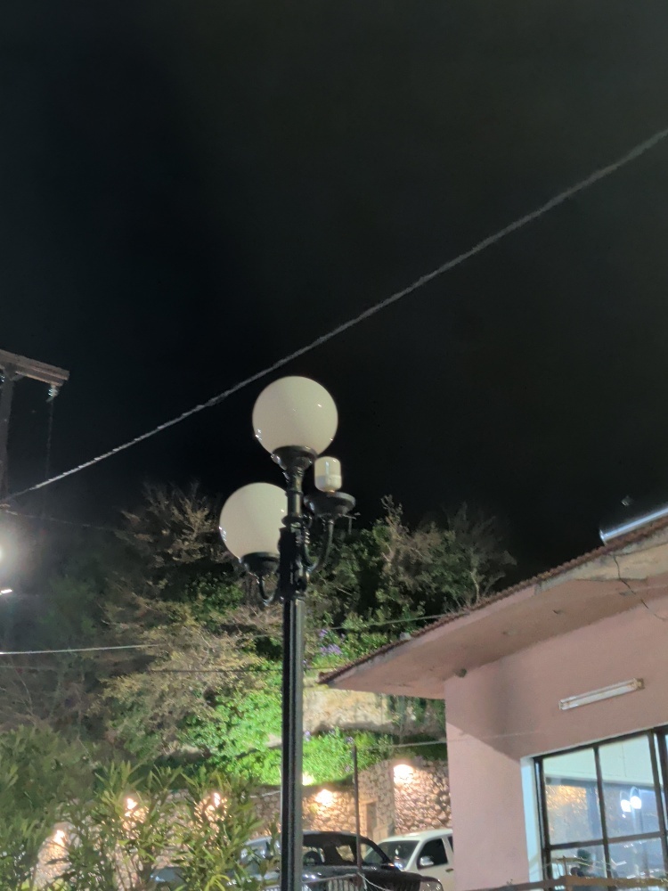 Καμένα 3 ολόκληρα φωτιστικά και μια λάμπα σε ένα ακόμα φωτιστικο, στο κέντρο του Κρυονεριτη στην Εκκλησία του Αγίου Γεωργίου